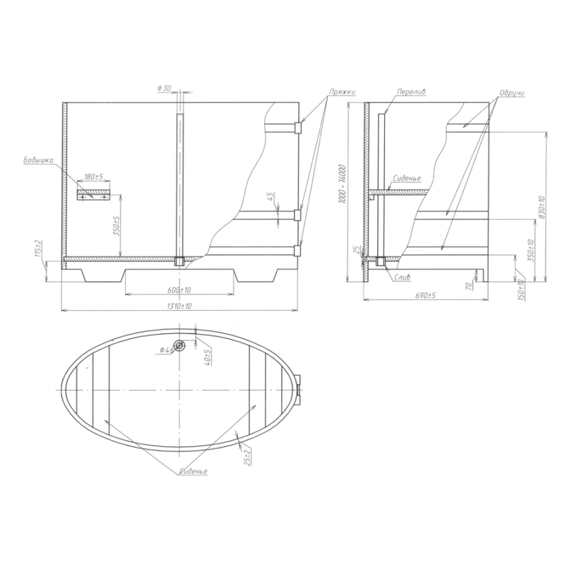 Купель лиственница Рустик 0,69х1,31х1,0 (Натуральная УФ)
