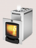 Сибирь - очень мощная печь-каменка, рассчитанная на большие парные. Ее мощности хватит на обогрев всей бани и на приготовление качественного пара для парной. Кожух-конвектор печи защищает парную от инфракрасного излучения, а декоративные вставки из зеркальной нержавеющей стали оживляют внешний вид печи.