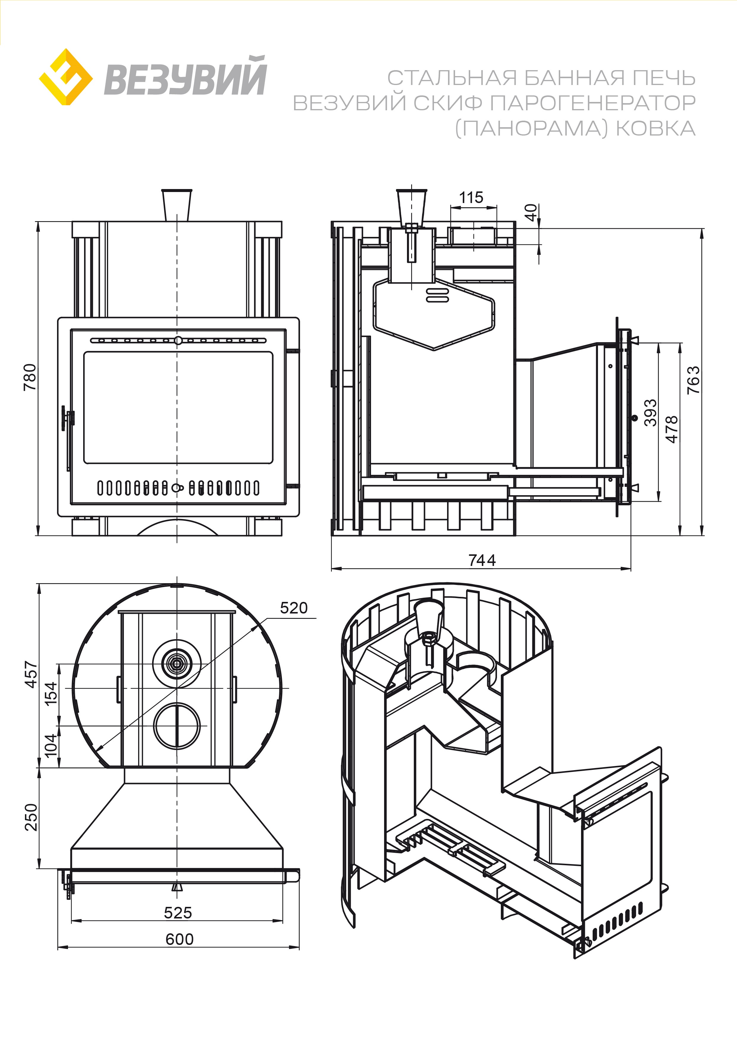 Печь ВЕЗУВИЙ Скиф Парогенератор Ковка Панорама "М"2022