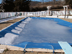 - Если перед началом холодов вы законсервировали бассейн, накрыв его защитной пленкой или кровельным материалом, хлопот будет намного меньше, не придется очищать воду от листвы и мусора.