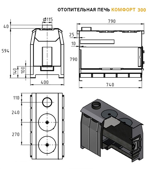 Печь Везувий "Комфорт 300" (ДТ-3) выполнена в эргономичном дизайне, компактна по своим размерам, окрашена эмалью черного цвета, что позволяет ей органично вписаться в интерьер любого помещения, долго обогревать дом, привнося в него тепло и уют.